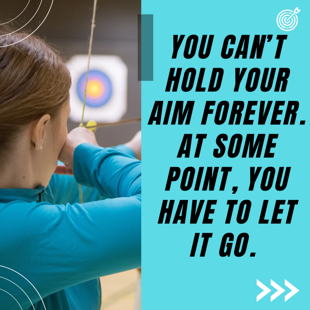 Write a scene with the opening line “You can’t hold your aim forever. At some point, You have to let it go.”