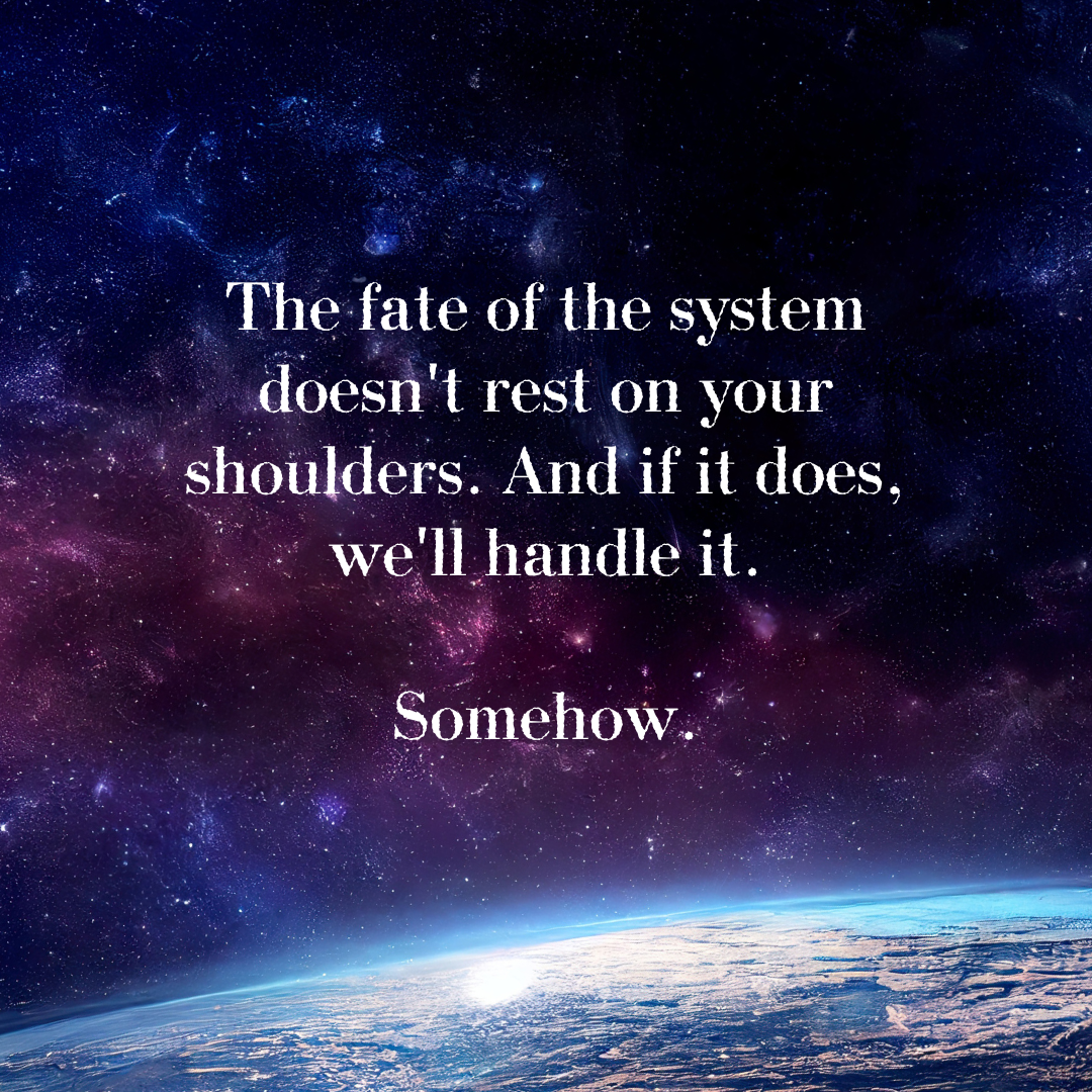 Posted on March 13, 2023March 5, 2023 by Erin Klitzke365 Days of Prompts – March 13 Write a scene with the opening line: “The fate of the system doesn’t rest on your shoulders. And if it does, we’ll handle it. Somehow.” Liked it? Take a second to support Erin Klitzke on Patreon!Share this: Click to share on Facebook (Opens in new window) Facebook Click to share on X (Opens in new window) X Click to share on Tumblr (Opens in new window) Tumblr Click to email a link to a friend (Opens in new window) Email Click to print (Opens in new window) Print More Click to share on Pocket (Opens in new window) Pocket Click to share on Reddit (Opens in new window) Reddit Click to share on WhatsApp (Opens in new window) WhatsApp Click to share on Telegram (Opens in new window) Telegram Click to share on LinkedIn (Opens in new window) LinkedIn Like this:Like Loading...