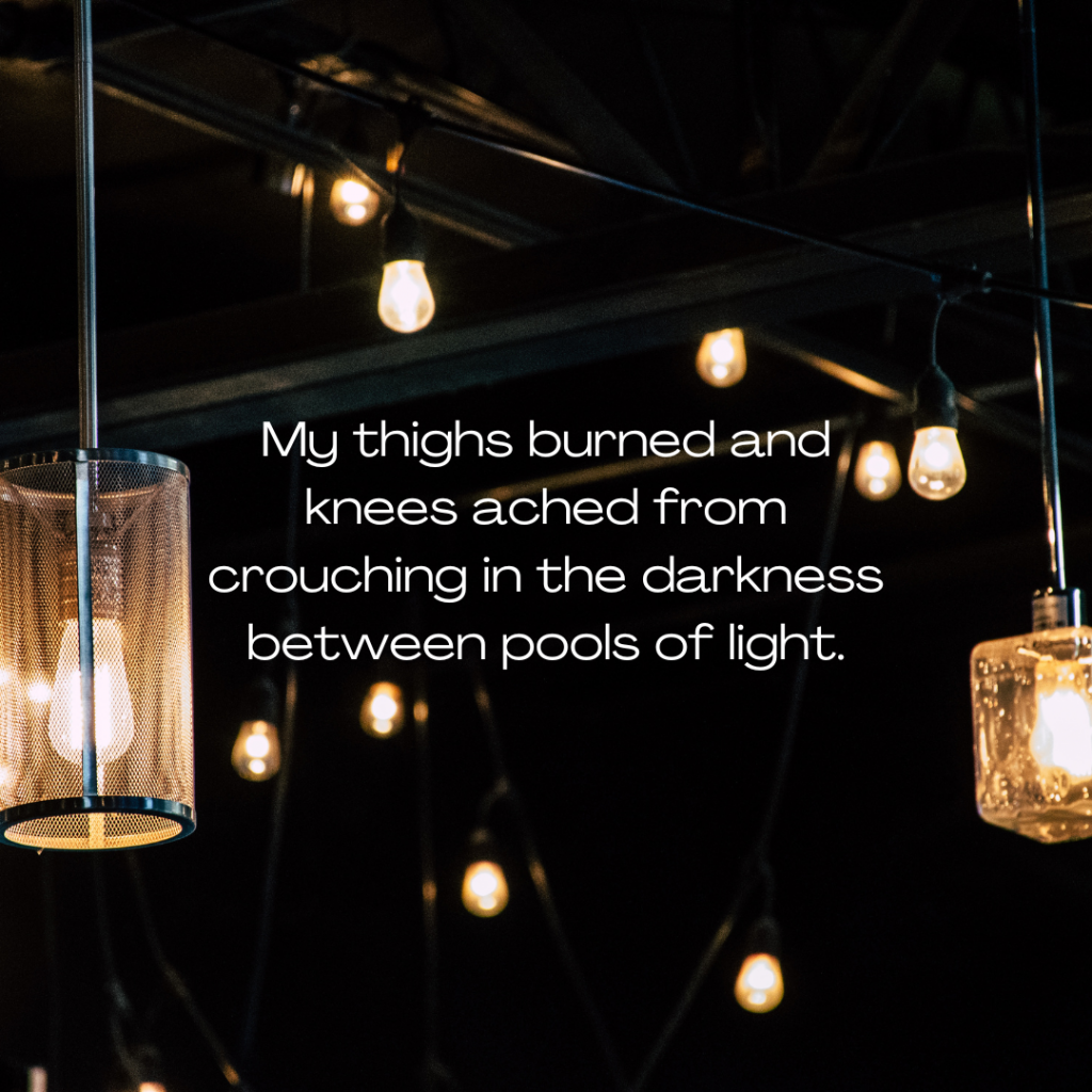 Posted on October 27, 2023October 26, 2023 by Erin Klitzke365 Days of Prompts – October 27 Write a scene with the opening line “My thighs burned and knees ached from crouching in the darkness between pools of light.” Liked it? Take a second to support Erin Klitzke on Patreon!Share this: Click to share on Facebook (Opens in new window) Facebook Click to share on X (Opens in new window) X Click to share on Tumblr (Opens in new window) Tumblr Click to email a link to a friend (Opens in new window) Email Click to print (Opens in new window) Print More Click to share on Pocket (Opens in new window) Pocket Click to share on Reddit (Opens in new window) Reddit Click to share on WhatsApp (Opens in new window) WhatsApp Click to share on Telegram (Opens in new window) Telegram Click to share on LinkedIn (Opens in new window) LinkedIn Like this:Like Loading...